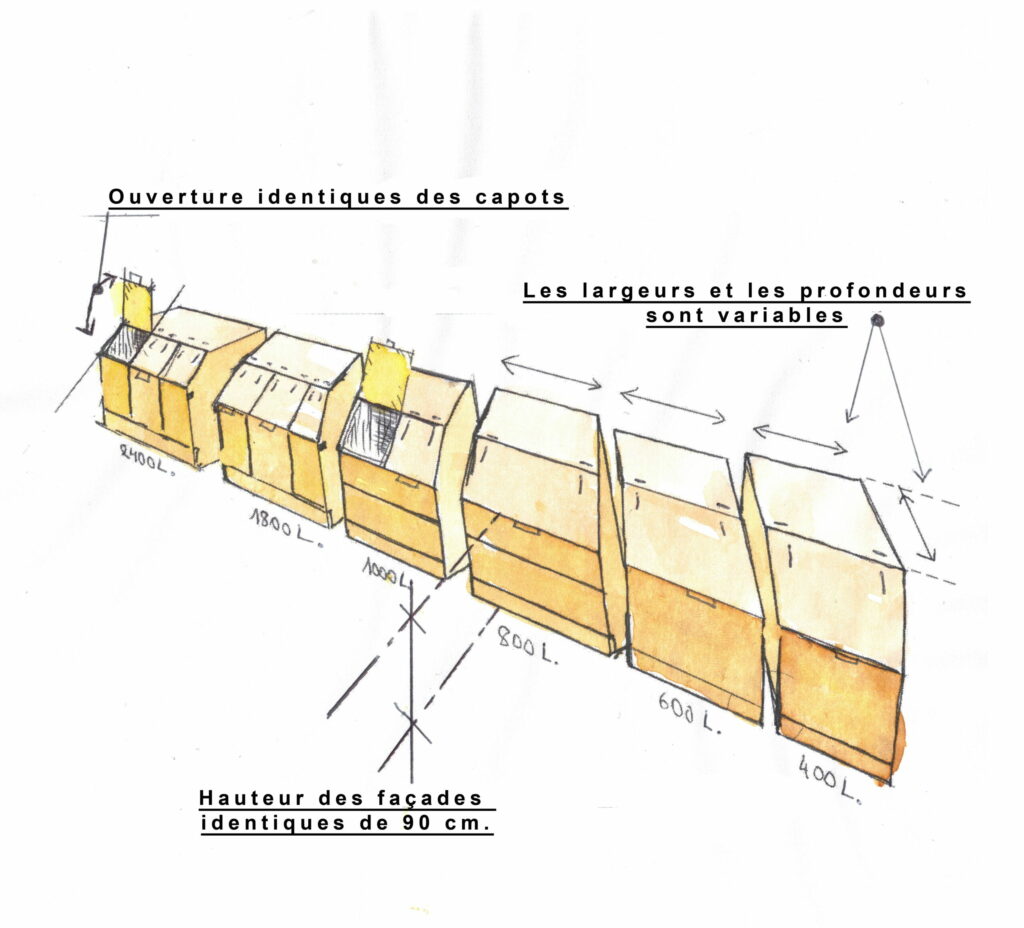 - Le 800 litres 2 façades et 1 capot à 560€ HT.